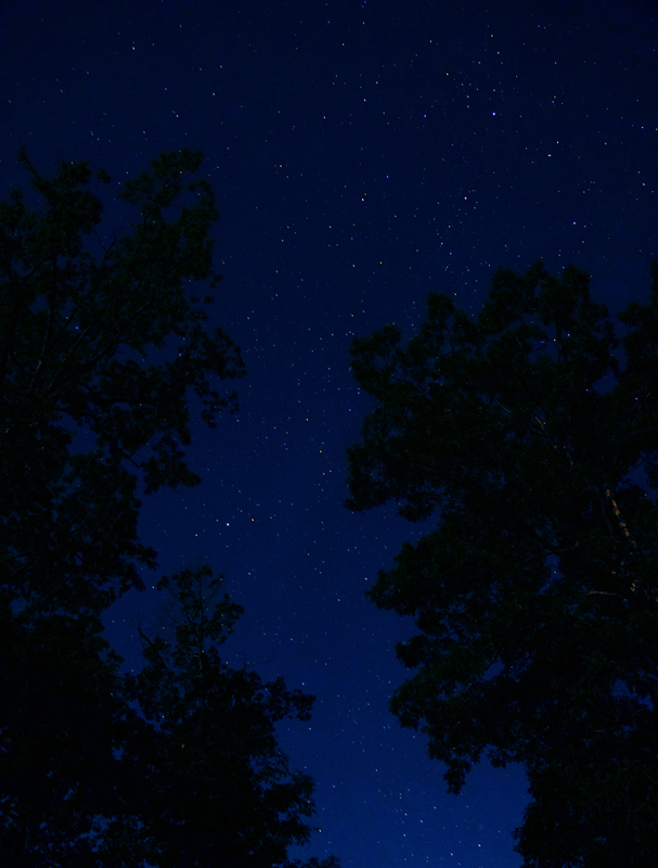 I stopped to notice the stars shining directly above through the pines.